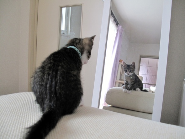 どうやら、鏡の向こうに何か居ると思っているようで、