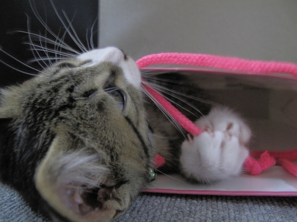 紙袋っていうか、ヒモで遊んでるだけのような(;´Д`)