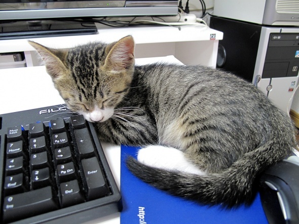 どこで寝れば微妙に邪魔になるかを考えてるんだろうな、きっと┐(´∀`)┌ヤレヤレ