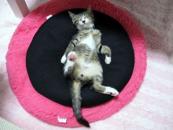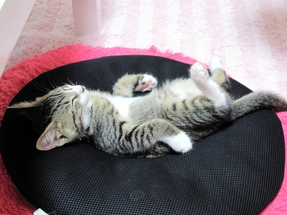 どうやらドーナツ型のクッションがお気に入りのようです