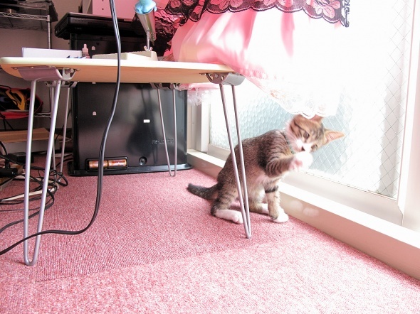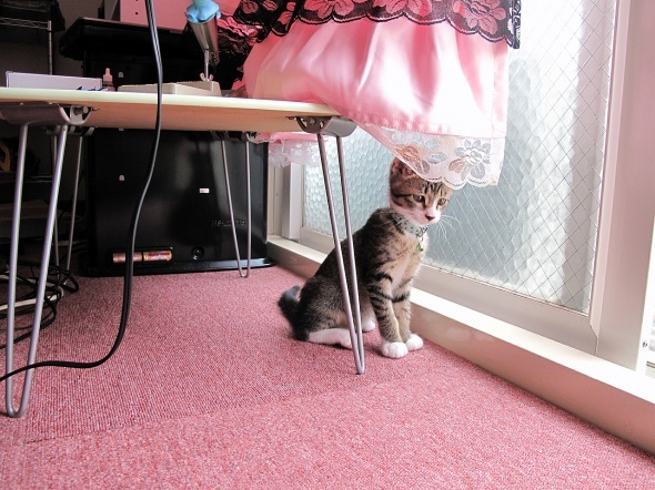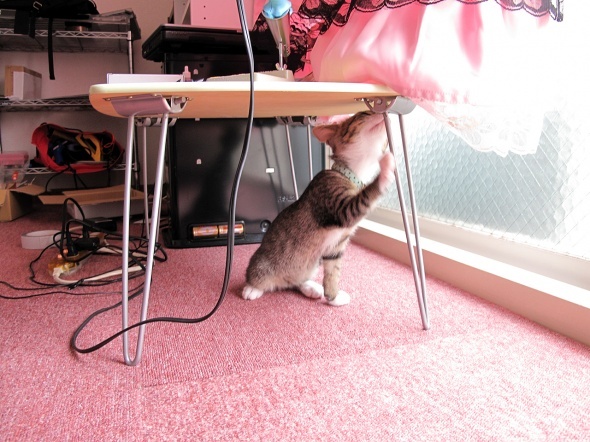 危険物が多いので、いつもは立ち入り禁止の部屋に入れてご満悦の半蔵