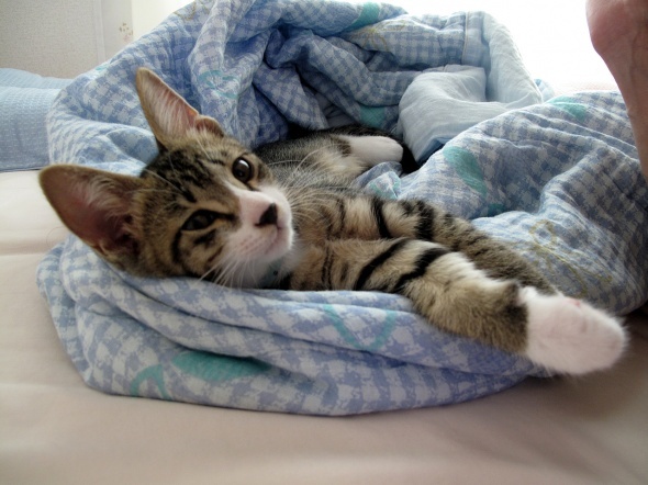 ちょっと柄がダサい夏用の掛け布団がお気に入りの半蔵です