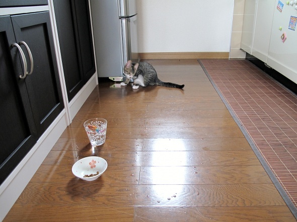 一人で遊んでた半蔵が、やたらにゃーにゃー言うので様子を見に行くと・・・