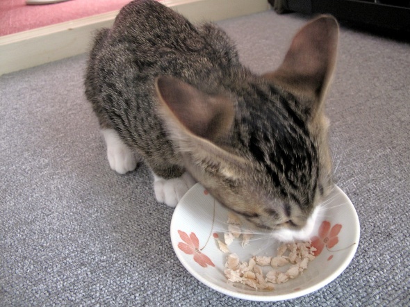 ササミとかつお節をあげてますwww