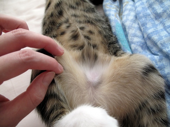 この通り、お腹側に長い毛が結構生えてる半蔵ですが