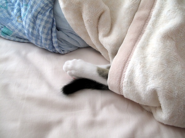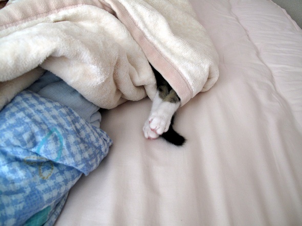 今日も、人の寝床を占領してお昼寝中の半蔵です