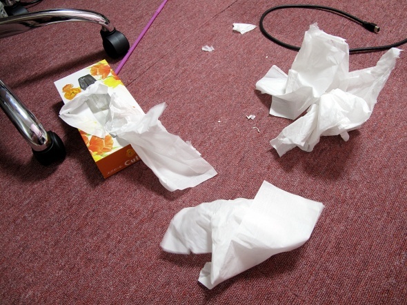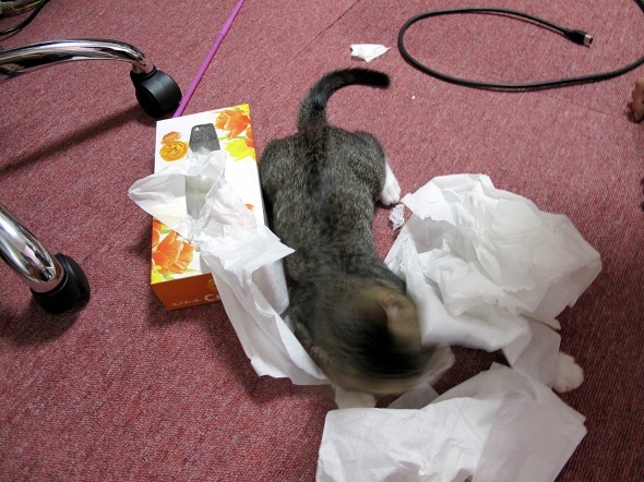今まで、ティッシュには興味なさげだったのに・・・