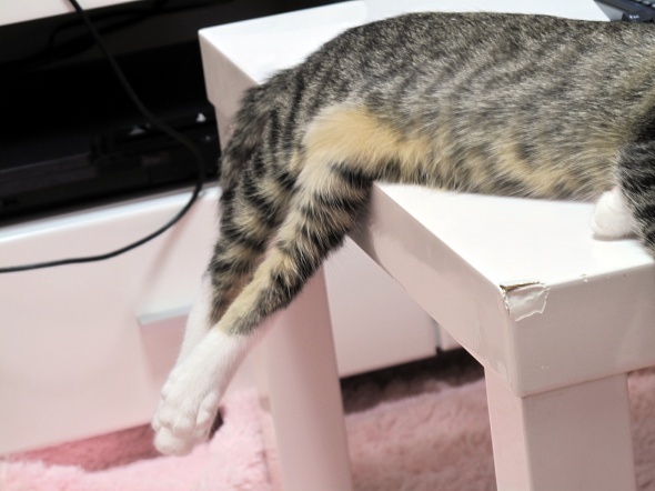 あら、モフモフの足が空中に・・・
