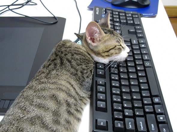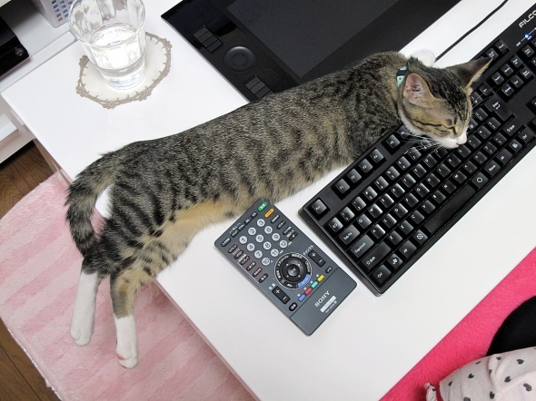 良く見たら、ヒジが落ちてますが上手い事アゴで手を押さえてて