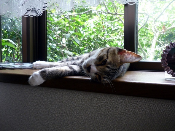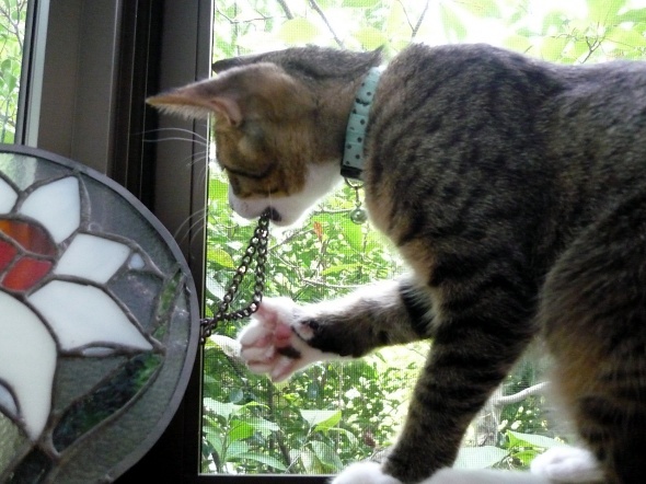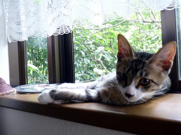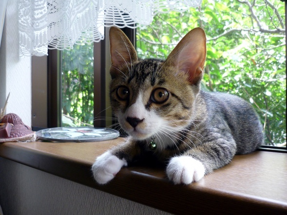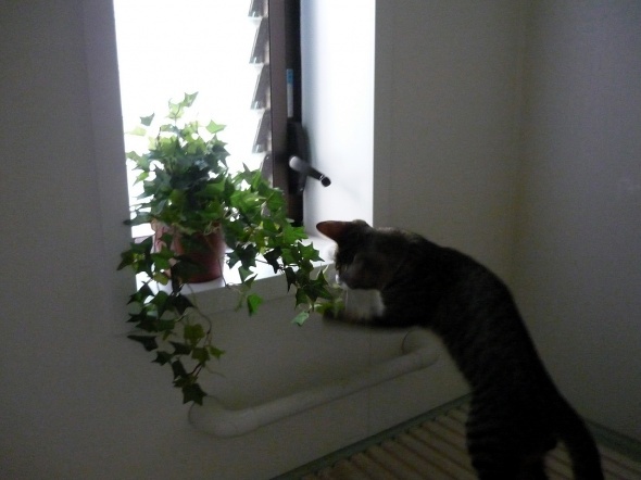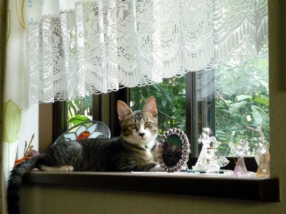 そしてよりによって、置物満載の出窓が気に入った様子