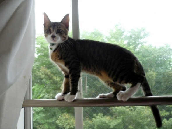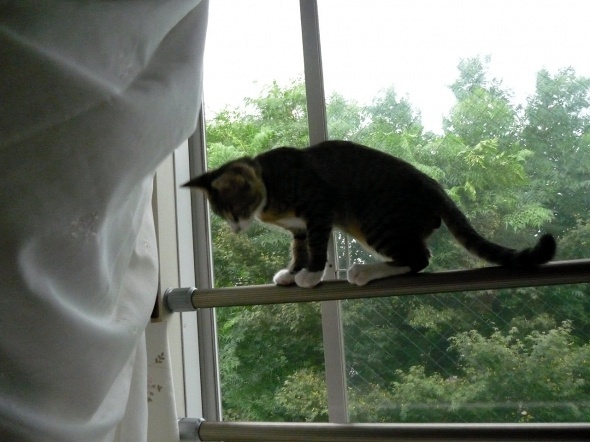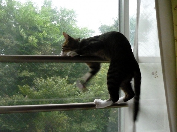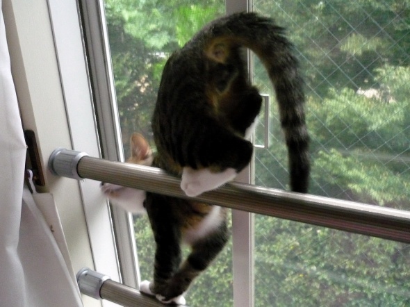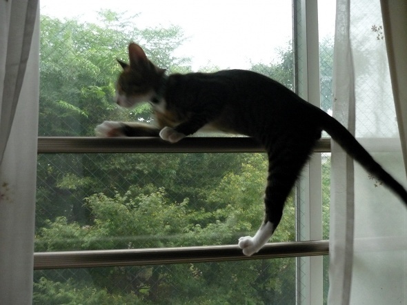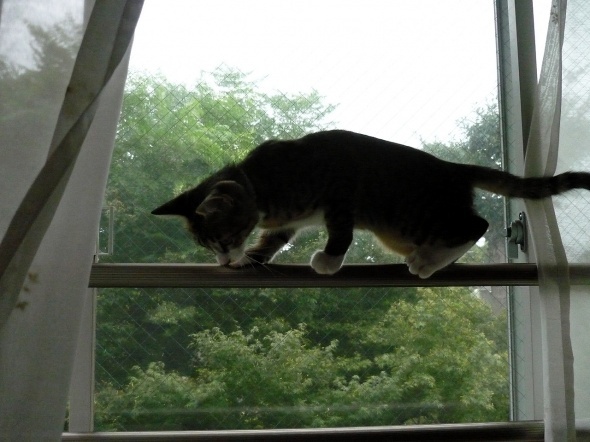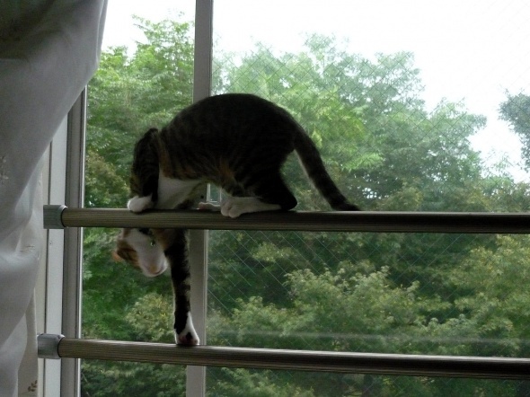 いつの間にか、この窓の手すりにも登れるようになりました