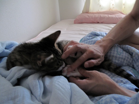 丁度、風呂上りだし肉球クリーム塗りまーす