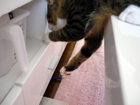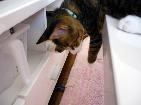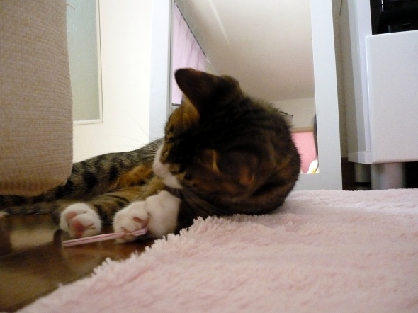 あら、足元にあったボールペンで遊びだしましたよ