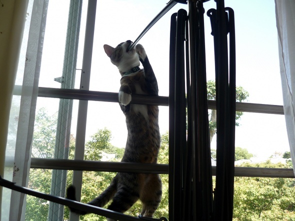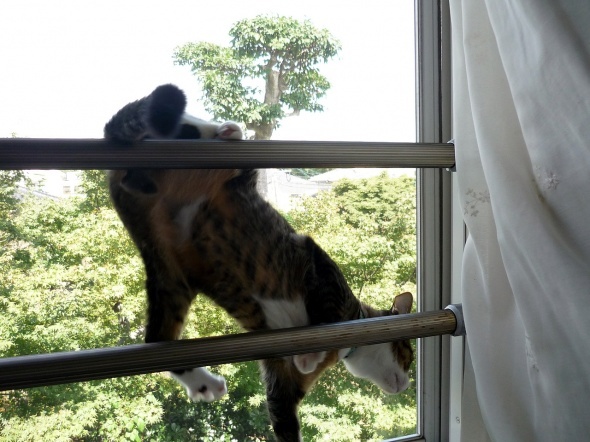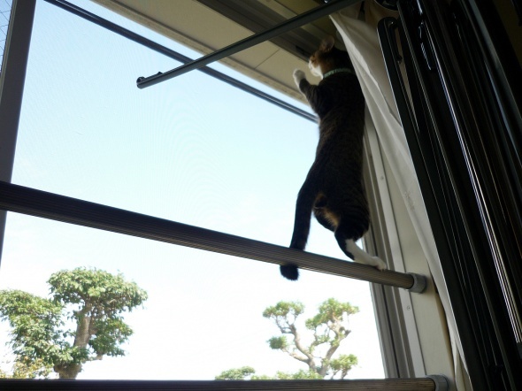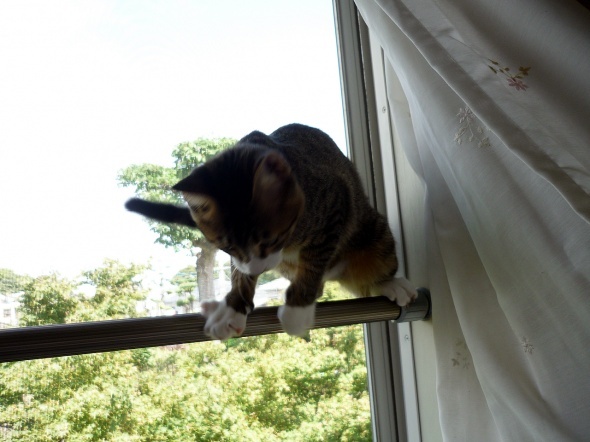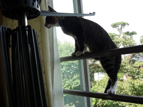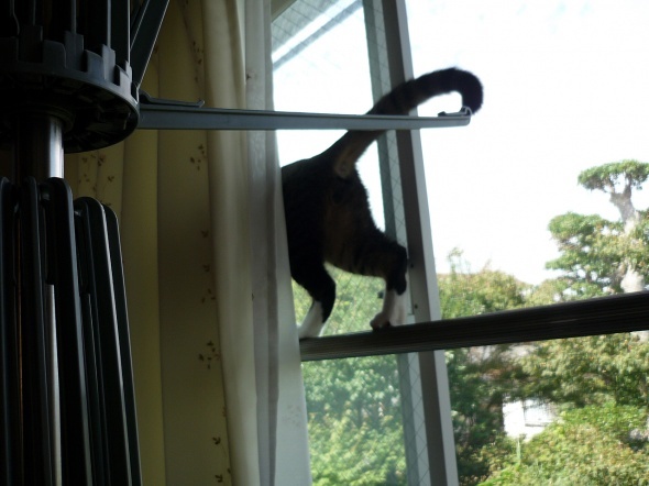 最近、この洗濯物干しとよく遊んでいます(´Д`)