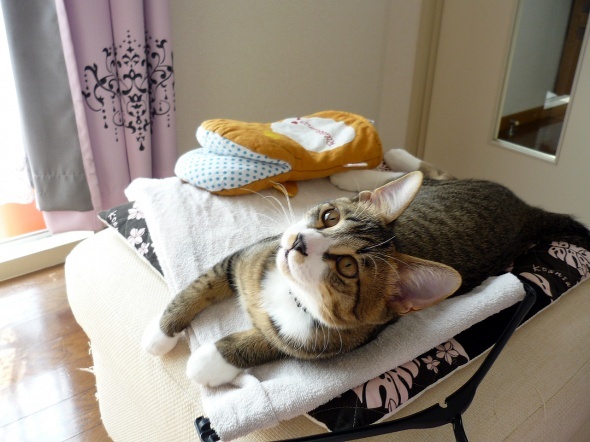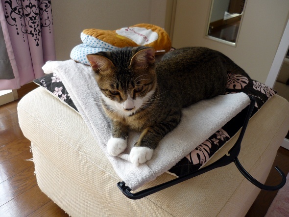 すねて、洗濯物の上から動きません(;´Д`)