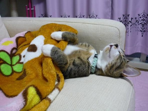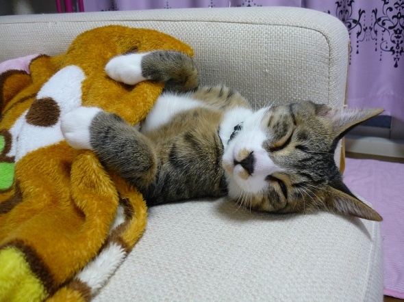 普通猫って、うつぶせで丸くなって寝るものではないのですか?