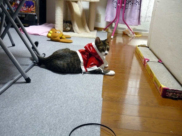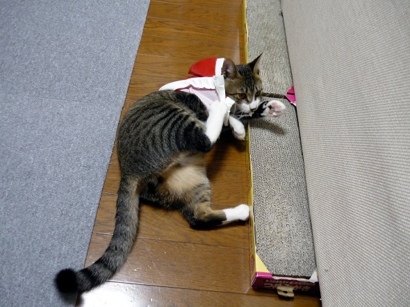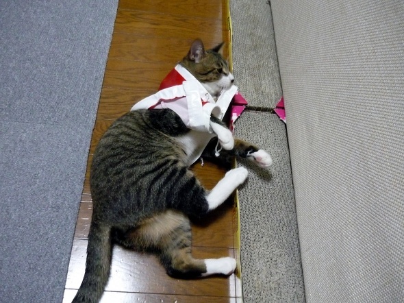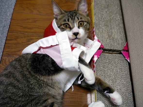 猫用の服って地味に高いからとりあえずこれで慣れてもらおう~♪