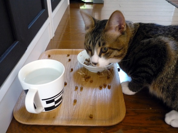 いつものカリカリで我慢してください