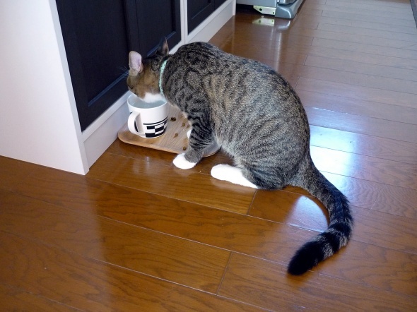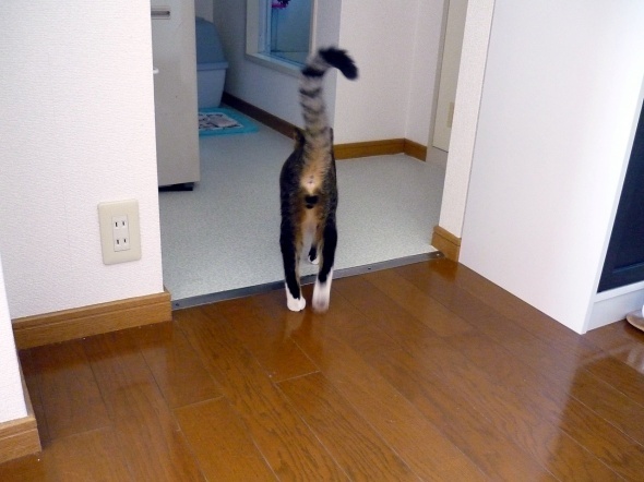 食後は大抵爪とぎに行くのですが、今日はトイレへ向かうようです