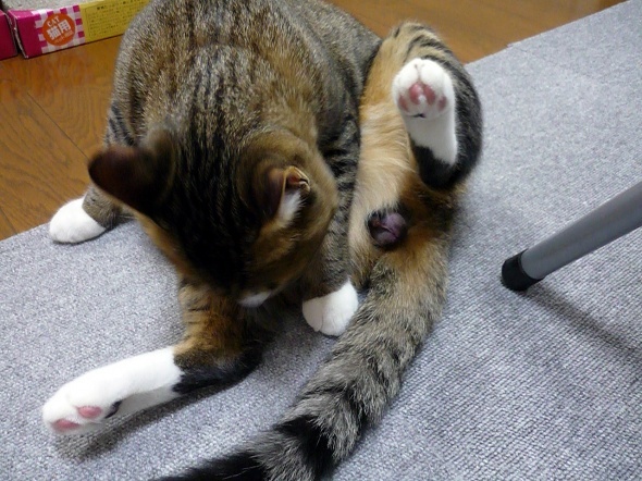 半蔵も気になるみたいでずっとぺろぺろしています