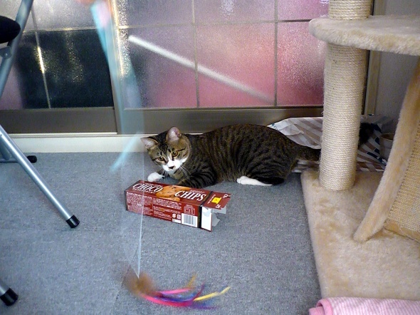 ちなみに、写ってるクッキーの箱に入ろうとしたけど