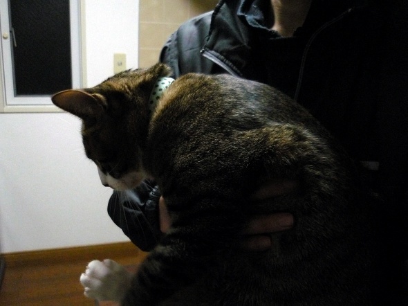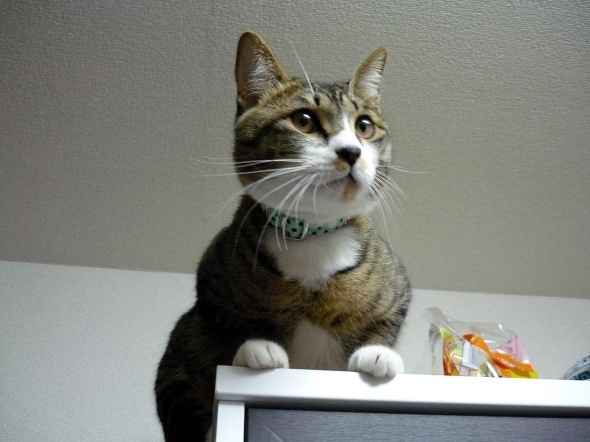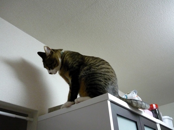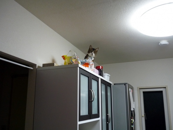 どうにかして、冷蔵庫に登ったらしい半蔵