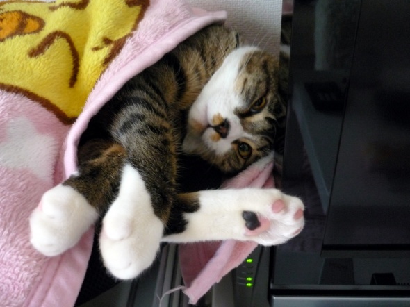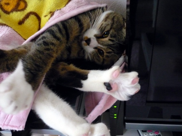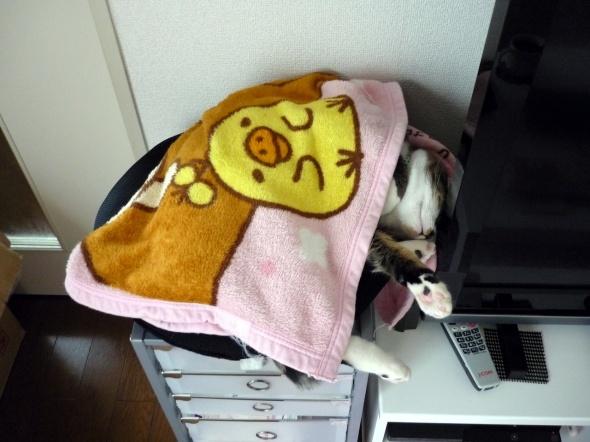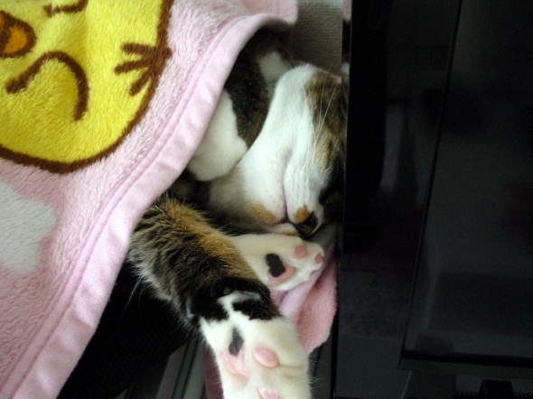 よく見ると、自分の足の匂いを嗅ぎながら寝ています