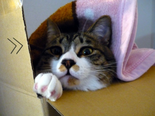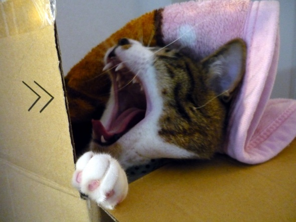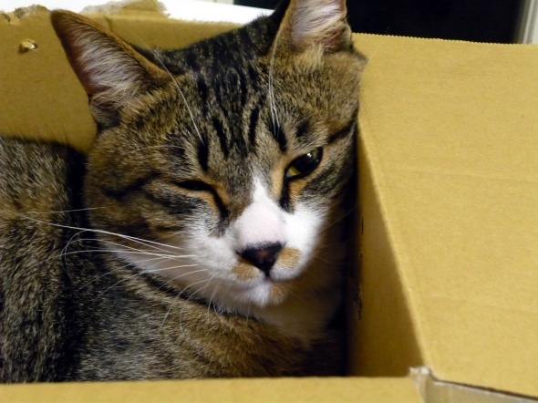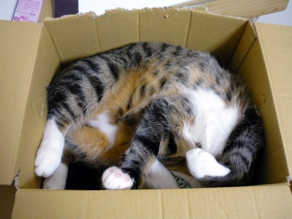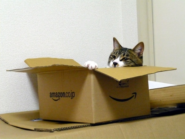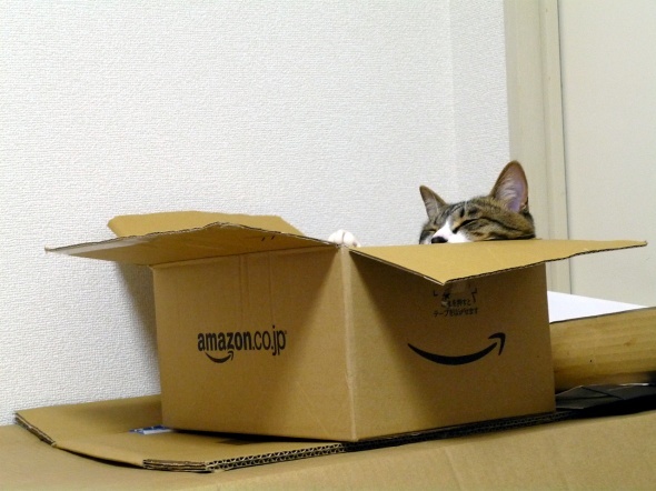 アマゾンの箱で遊んでいる半蔵
