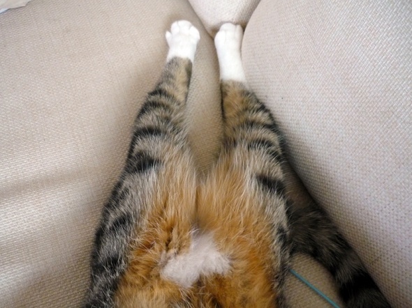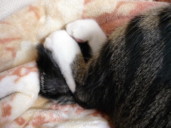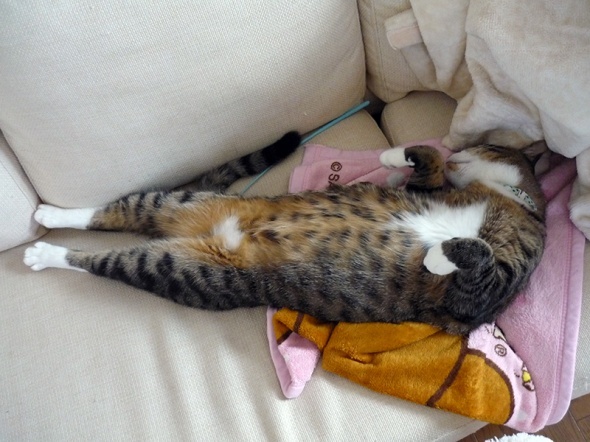 お昼寝してました(ノ∀`)しっぽ踏んでるし