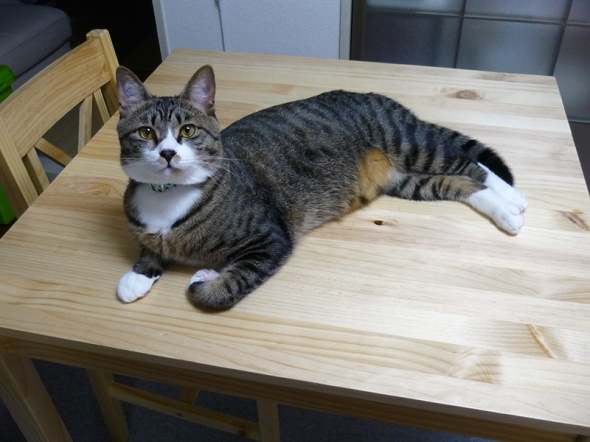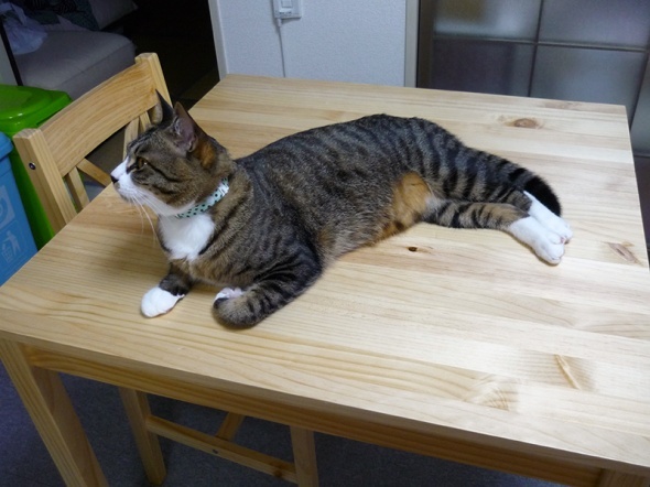 あのー、それ寝床じゃなくてダイニングテーブルなんですけど・・・(;´Д`)
