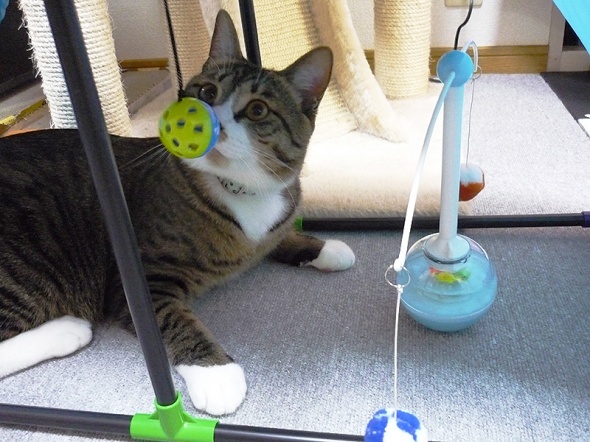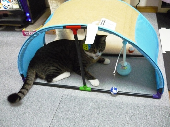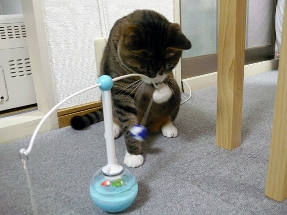 さっそくおもちゃで遊ぶ半蔵