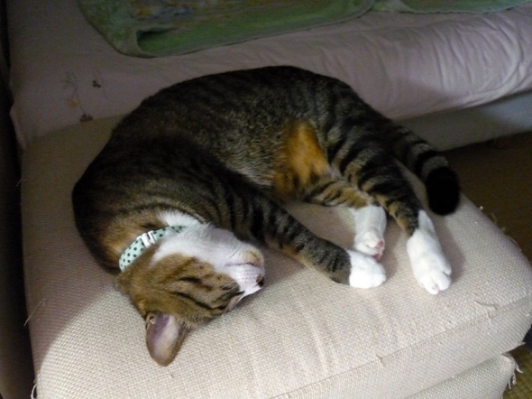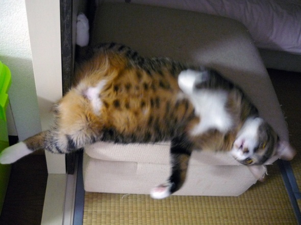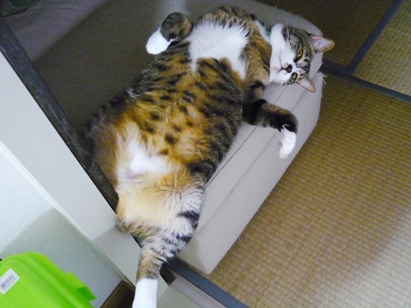 ほらー、自分の体格を考えないでゴロゴロしてるから