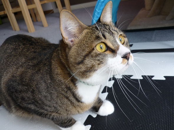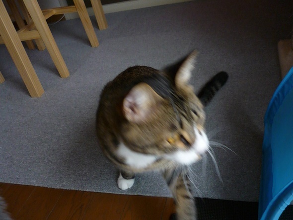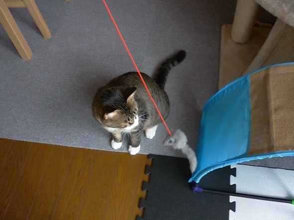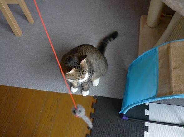 ねずみにゴムひもが付いてるおもちゃに半蔵は夢中です(゚∀゚)