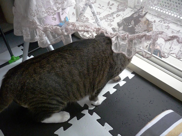 おもちゃよりも、外の鳥さんが気になるのね(;^ω^)