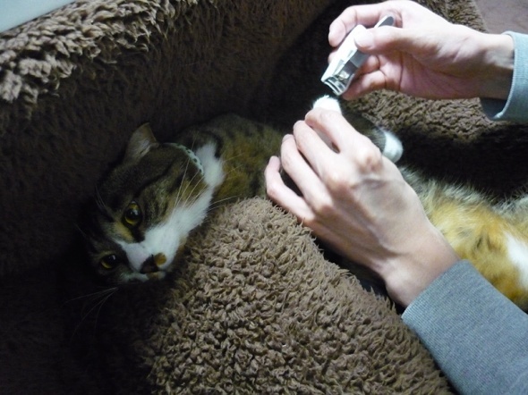 爪切りの時は、いつもこの何とも言えない表情をしています