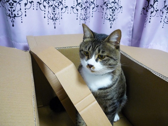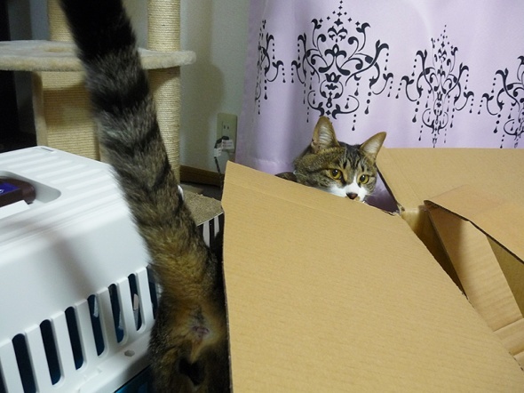 キャリーが入ってたダンボールを気に入るという猫あるある(ノ∀`)