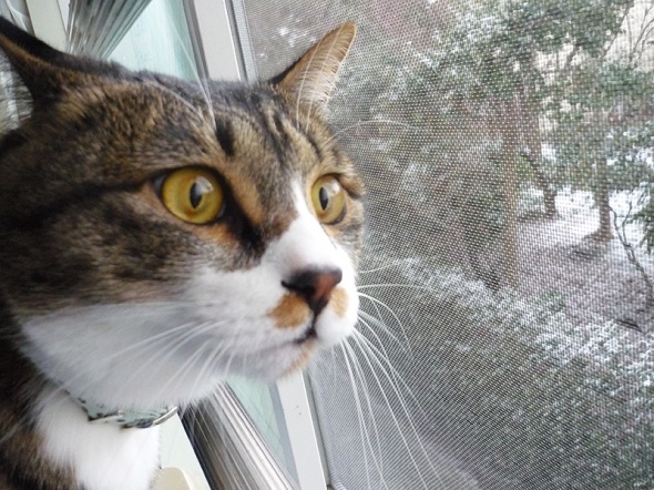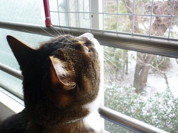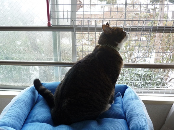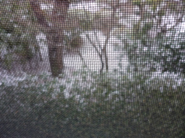 ものすごく網戸で申し訳ないですが、今日は雪がうっすら積もりましたヽ(*´∀`)ノ