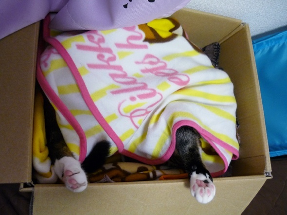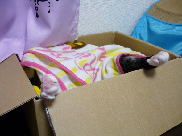 最近のお気に入りお昼寝スポットはこのダンボールです