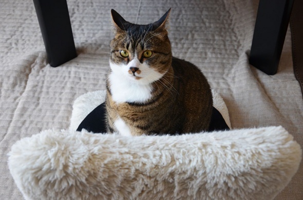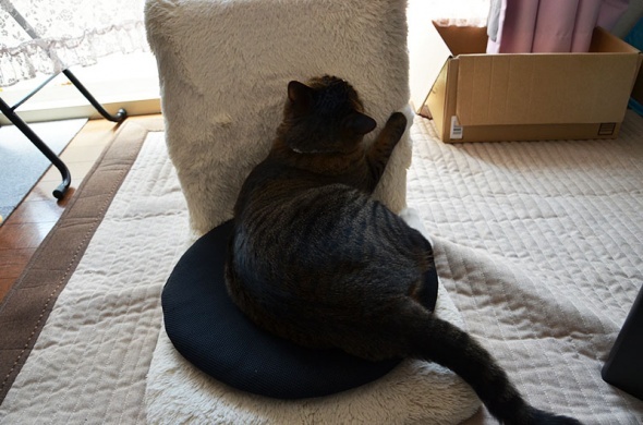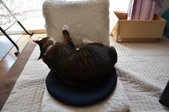 執拗に座椅子を攻撃しています