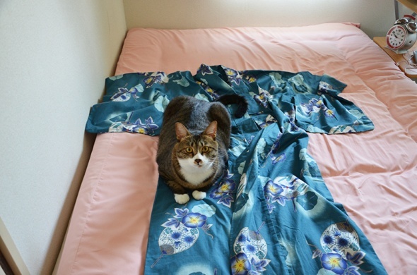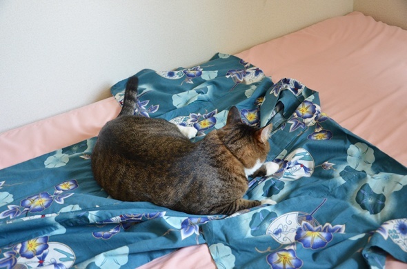 折角出したのに使わなかった浴衣を畳んでいると、半蔵が邪魔しにきましたよ