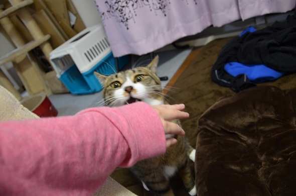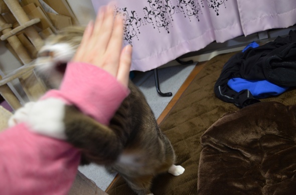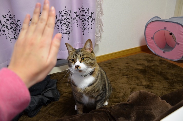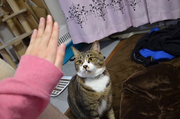 半蔵さん、猫がハイタッチしてる動画を見て真似したくなったのでお願いします