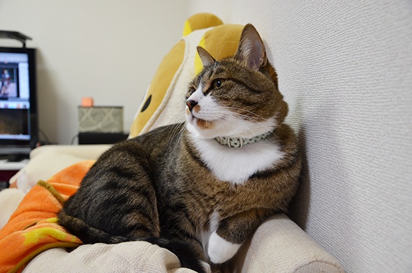 半蔵がいっちょまえに肘掛を使っています