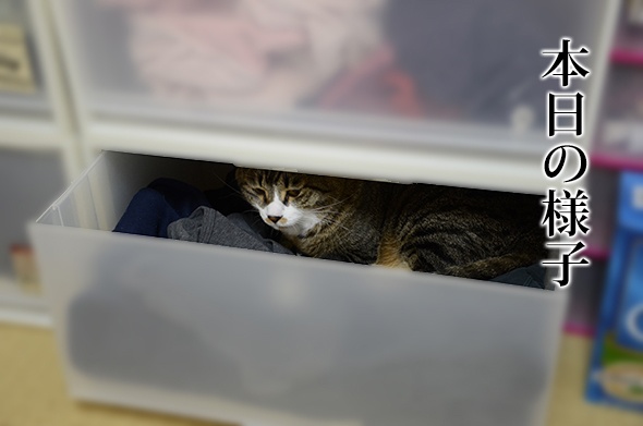 で、私が起きてからは衣装ケースに入りたそうだったので特別に開放しました