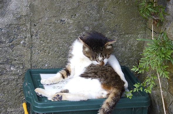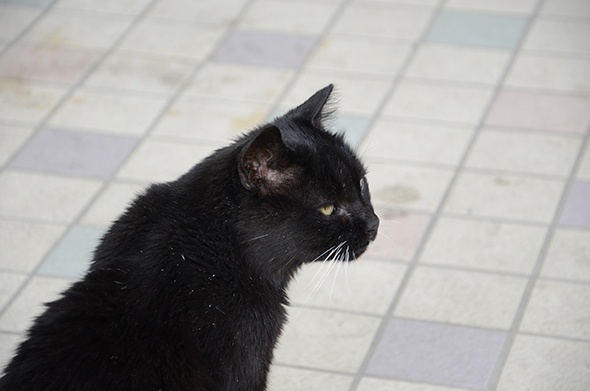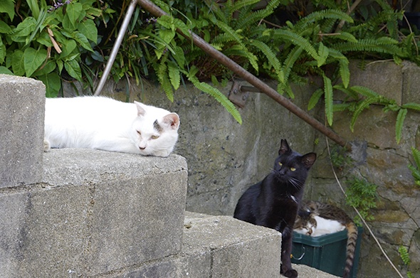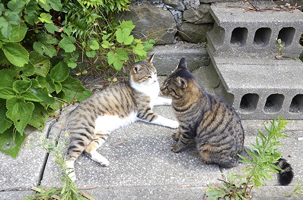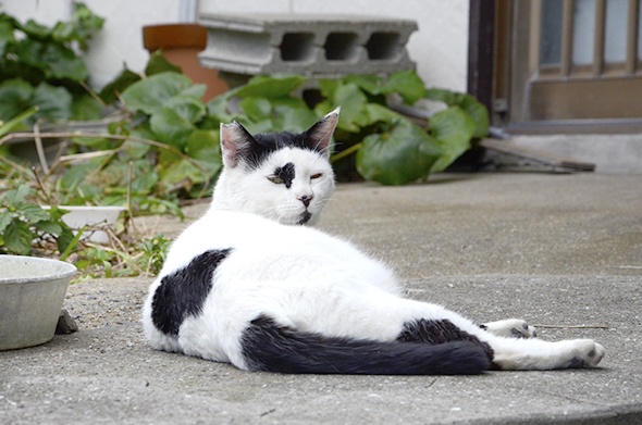 この島で私がよく見かけたのは、キジ白⇒キジ⇒黒⇒黒白の子ですね