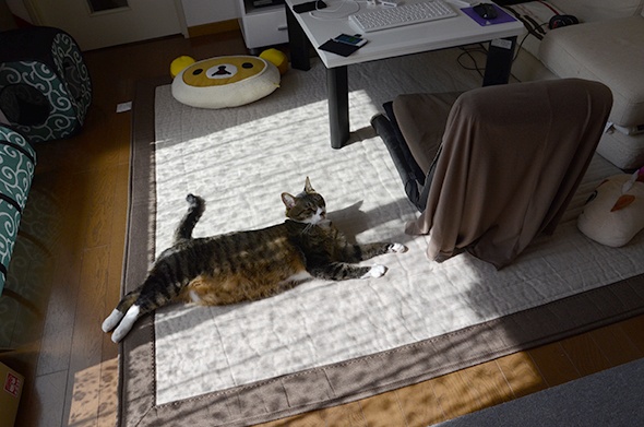 ソファーが無くなった分、広くなった日向スポットで広々お昼寝