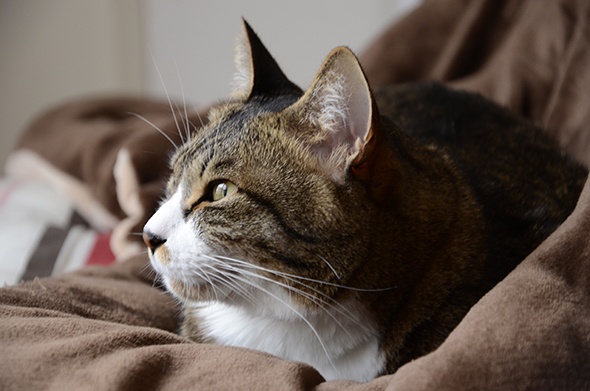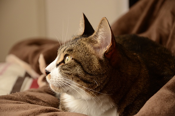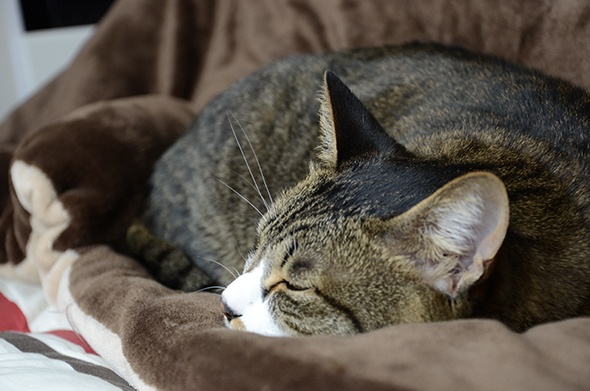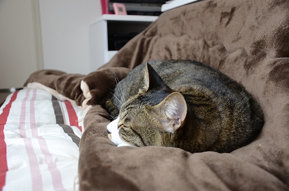 コタツの中が暑くなると、ニュッと出てきてここに落ち着きます