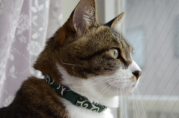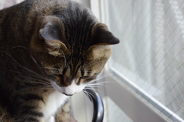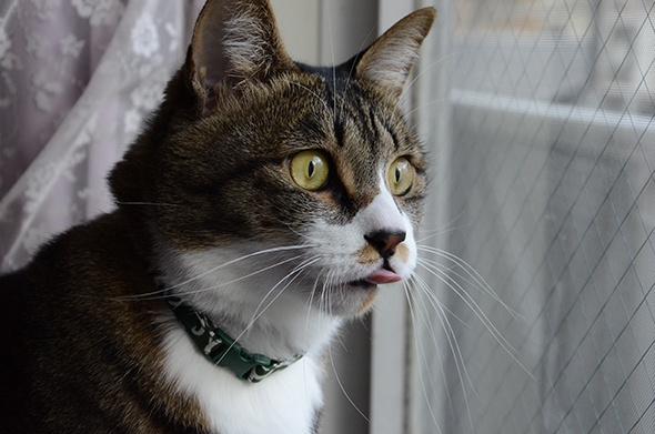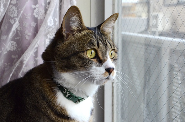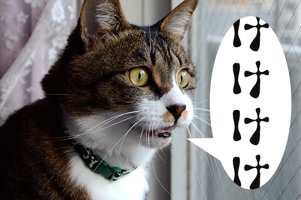 鳥さんが近くに居ると、「う”に”ゃら”!」とか「けけけけ!」とか言い出します
