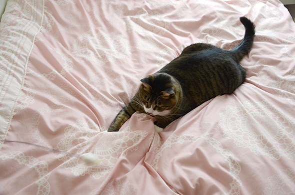 そろそろ換毛期だから、ベッドであんまり暴れないで欲しいなぁ・・・