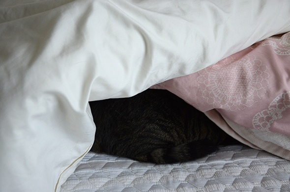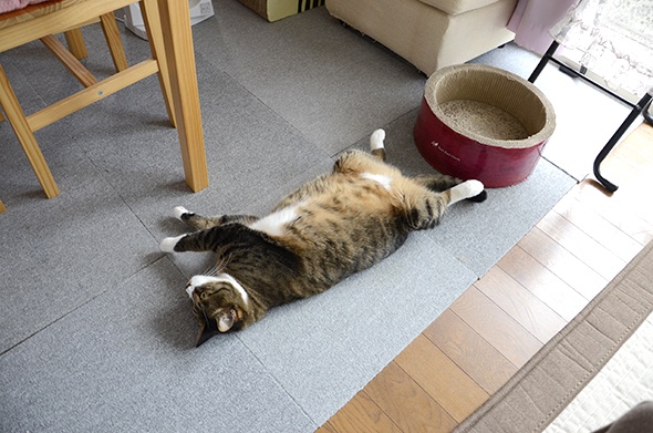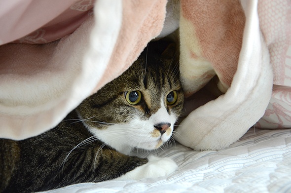帰ってきてまっすぐ布団へ直行する半蔵ちゃん