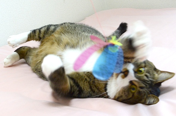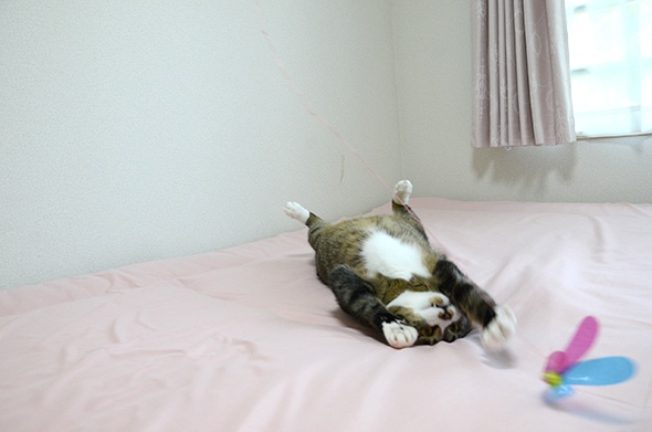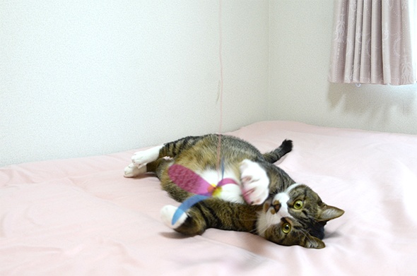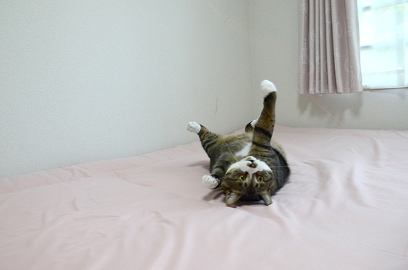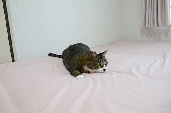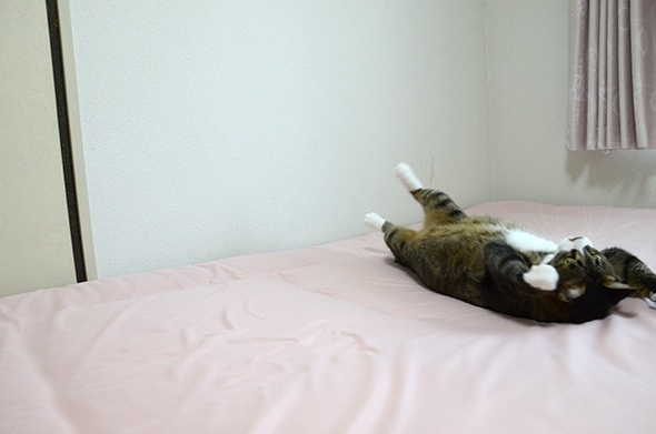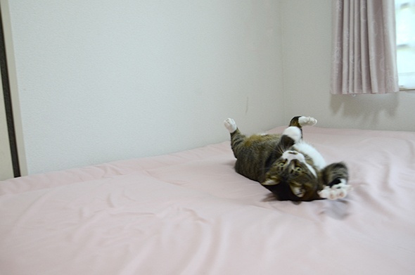 この状態のベッドで遊ぶのが好きみたいで、いつも邪魔してきます(;´Д`)